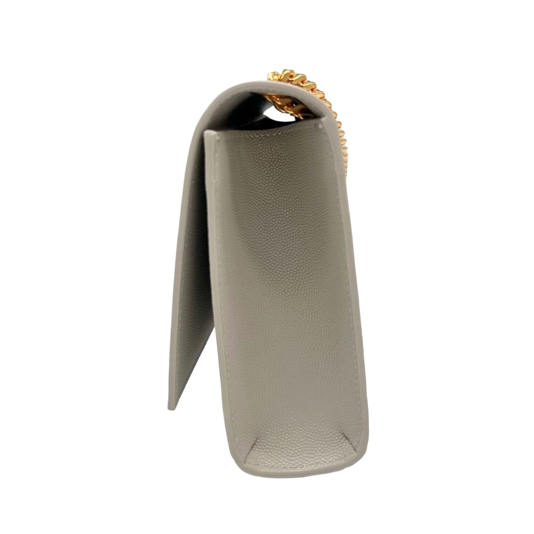 The Kate Chain Bag in Blanc Vintage grain de poudre leather captures Saint Laurent’s signature purity and poise. The off-white hue pairs beautifully with gleaming gold hardware, creating a look that is both classic and contemporary.