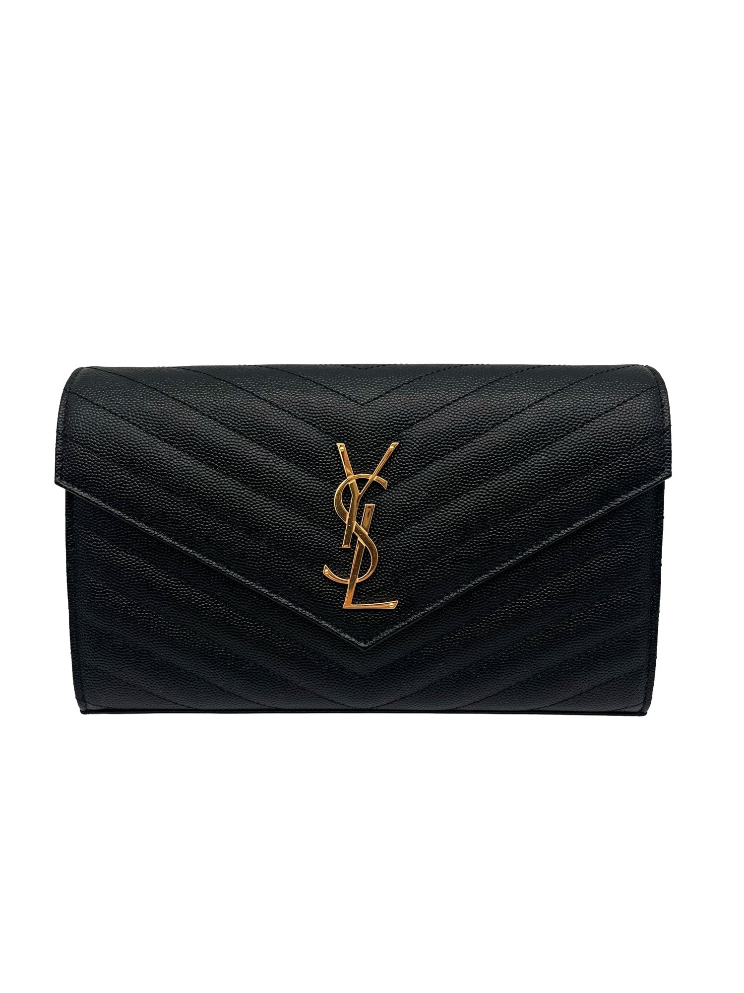 SAINT LAURENT Cassandre Classic Chain Wallet In Grain de Poudre Leather