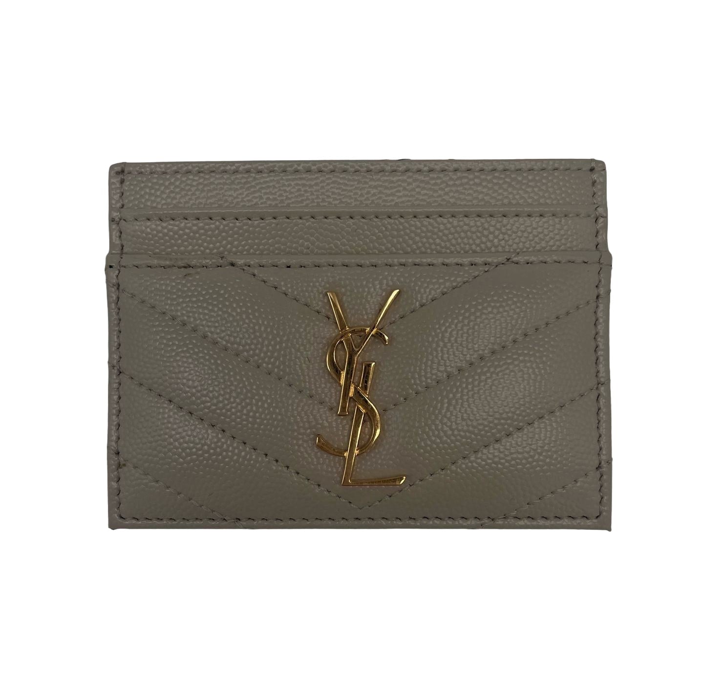 In soft Vintage White grain de poudre leather, this Cassandre card holder radiates effortless luxury. The chevron quilting and gold YSL monogram reflect Saint Laurent’s modern refinement.