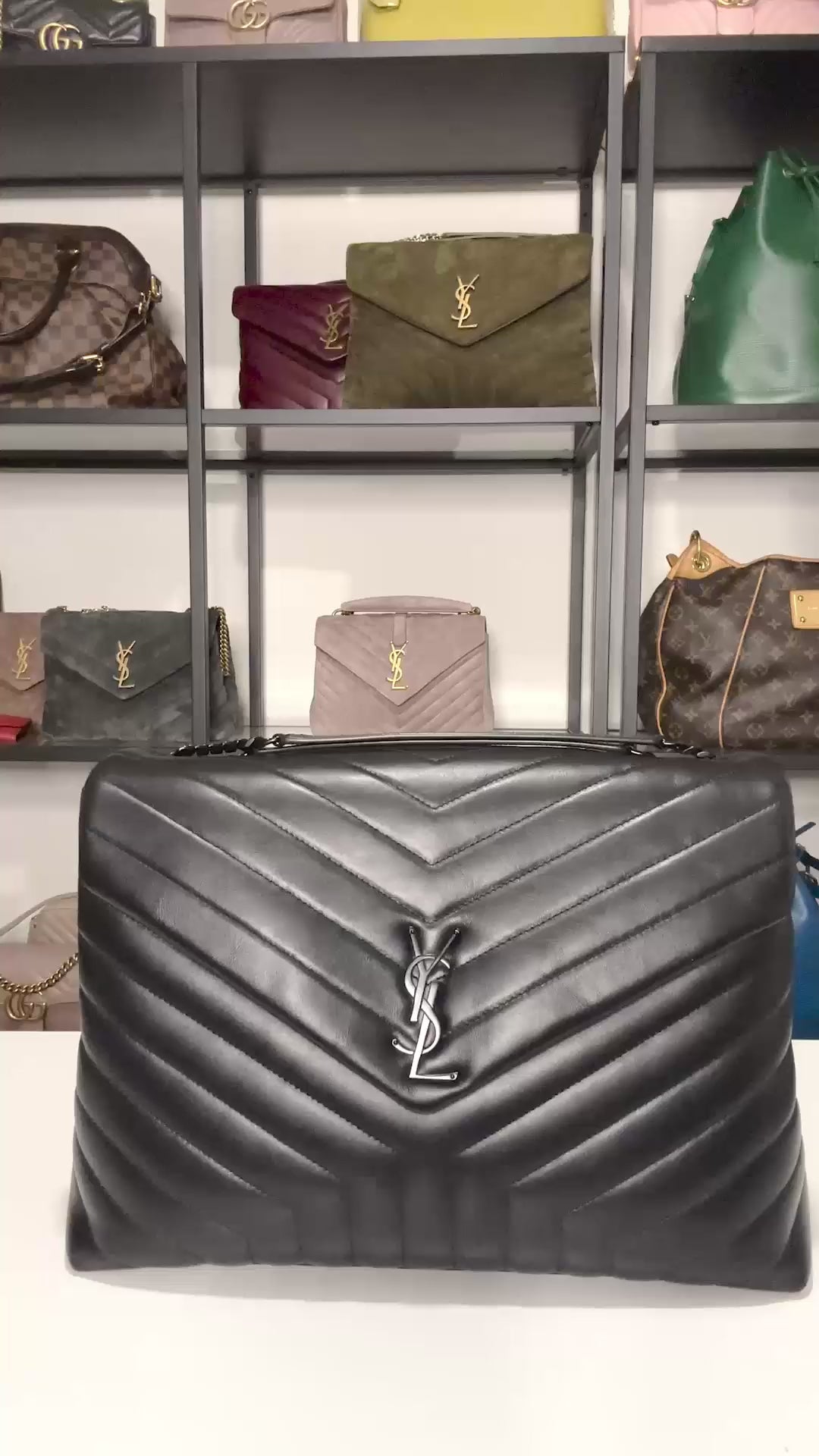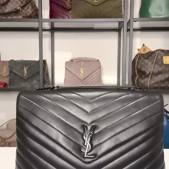 Make a bold yet refined statement with this large LouLou. The calfskin leather, signature Y-Quilting, black on black styling add depth and texture. This spacious silhouette doesn't just turns heads, it's ideal for those who carry more than just essentials. This bag will be the centerpiece of any outfit with an understated edge that only Saint Laurent can master.