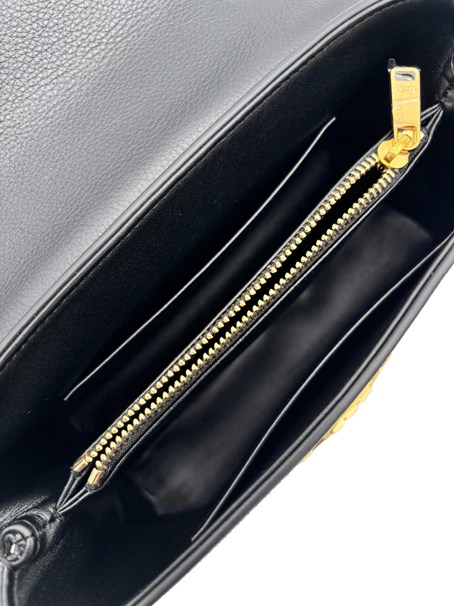 The deep black tone adds elegant contrast to the gold hardware, embodying effortless Parisian polish that transitions seamlessly from day to night.